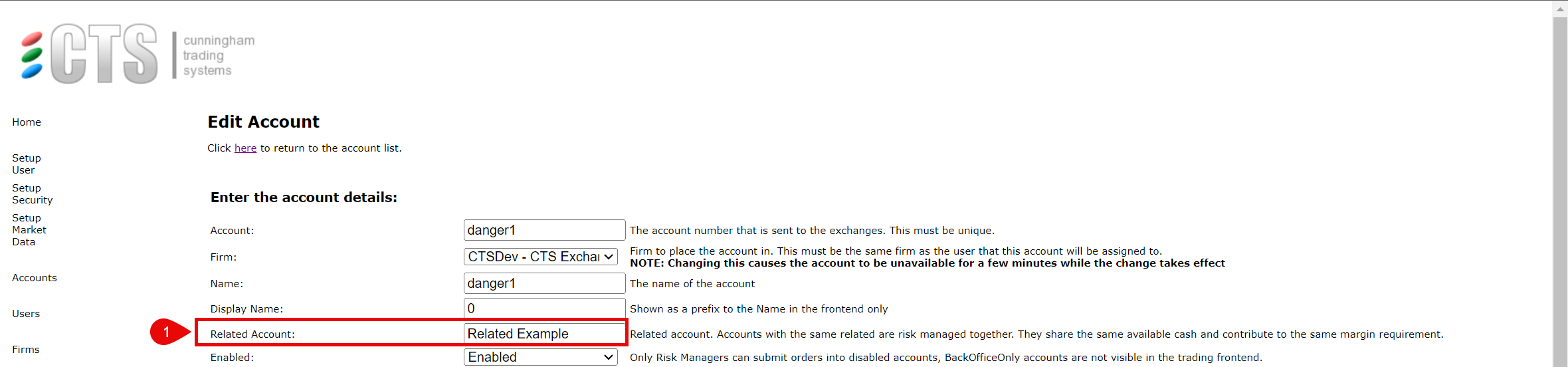 Note: the “Related” column does not necessarily relate to a real account that controls the individual accounts. It is simply the name of the group for risk aggregation purposes. The name must match exactly across all accounts in order for cash and risk values to be shared. However, the name can be set to an existing account name or number if desired.