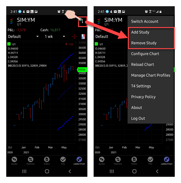 located in the upper right. Select remove a study and you will be directed to the list of studies that are available on your chart to be removed.