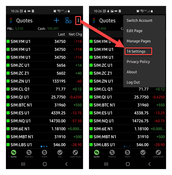 Just like T4 Desktop, T4 Android is highly customizable. You can access T4 Android settings from almost every screen in the application. Simply select the “Settings”