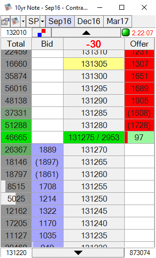 - Depth – This shows the bids and offers as a list instead of on a ladder. Prices where there are no bids/offers are hidden. This can be helpful in wide or thin markets