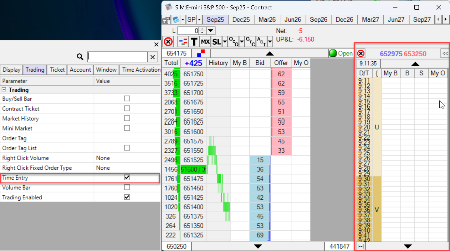 5. Change view: Allows you to display just the bids and offers in time entry window.