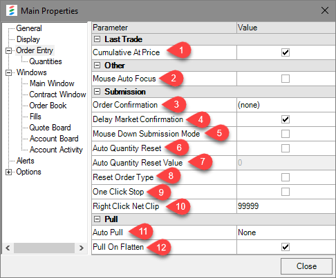 12. Pull On Flatten Attempts to pull all working orders prior in particular market prior to flattening an open position using the flatten tool.