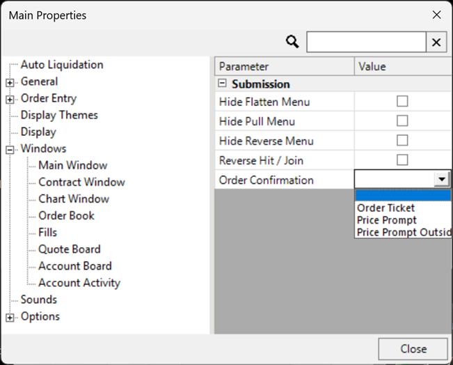 • Options: Options Order Entry Price Prompt Levels. Set the number of visible levels for the price prompt order entry method when used for submitting options orders.