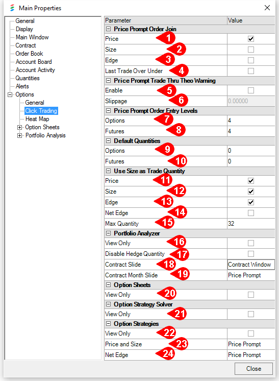 • View Only: Options Sheets View Only. Prevents click trading on all Options Sheet windows.