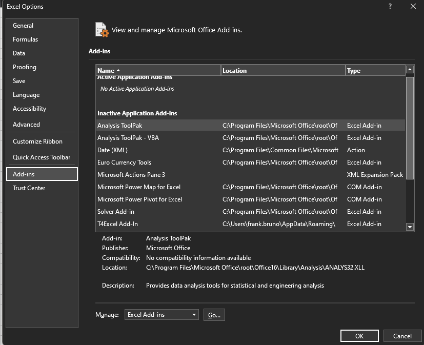 click Go next to manage add-ins
