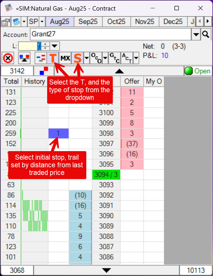 - It will change from black to orange, indicating the next order will be a trailing order.