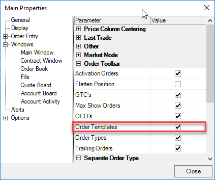 Order templates can be enabled from the main properties/Windows/order toolbar/order templates.